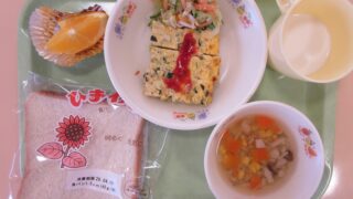 ・ご飯・中華卵スープ・マーボー豆腐・キャベツのりんごサラダ・牛乳