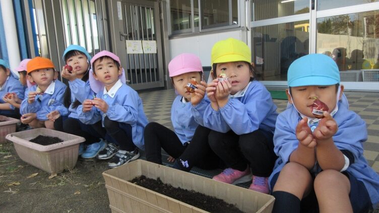 日々のようす チューリップを植えたよ 年中組のお友だちがチューリップを植えました。植える前には「タネをうえる」と思っていたようですが、球根をみて「おおきい」とビックリ!!芽が出る方を上にして、プランターにそっと植えることができました。年長さんが卒園する頃に、花が咲くかな。生長を... 2025.12.16 日々のようす