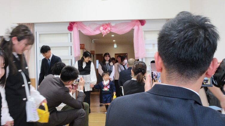 入園式がありました。ちょっぴり緊張しながら保護者と一緒に入場したこどもたち。お名前を呼ばれると「は~い」と元気よくお返事してくれました。これから幼稚園でいっぱい遊んでいっぱい食べて大きくなろうね。