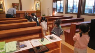 マリア祭 日々のようす 2022.01.112023.02.01 10/29 マリア祭を行いました✿ 全世界のカトリック教会では、10月を「ロザリオの月」と呼び、世界平和のために祈る季節を過ごします。全人類の母であるマリア様の取り次ぎを願って 戦争、飢餓難民、自然災害、病床や貧困で苦しんでいる人々、祈りを必要としている人々のために祈る習慣があります。 園でも、子どもたちと共に世界平和を願って祈りを捧げました。 Aクラスの子どもたちは特別な衣装を着て、とっても素敵でしたよ☆ これからも、子どもたちへ沢山の愛を伝えていけますように…♡