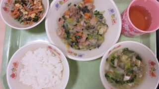 9月9日 献立の紹介 2022.09.242023.01.29 9月9日の給食メニューです🌟 ・さつま芋ご飯 ・豆乳汁 ・鮭の塩焼き ・小松菜のサラダ ・お月見ゼリー ・牛乳 9月10日はお月見ですね!写真の角度で見ずらいですがゼリーにお星さまとお月様🌕がうかんでいました🌟 給食は4歳児の量です🌟